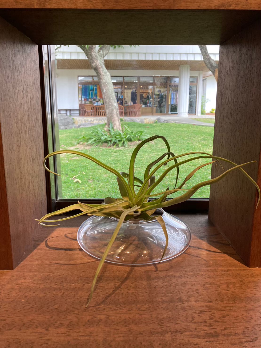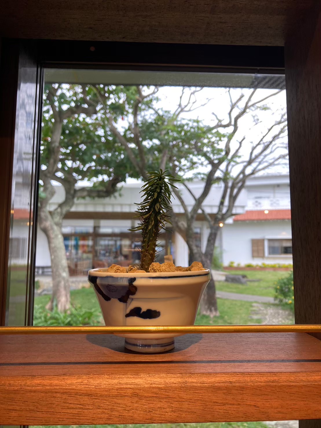 店外の小さな庭には、年月を経て成長が楽しみな植栽を。