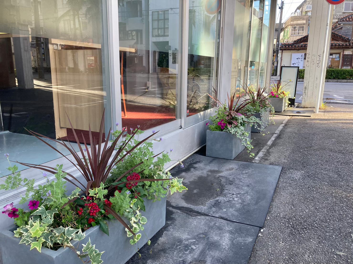 店舗に華やぎを添える植栽プランター。