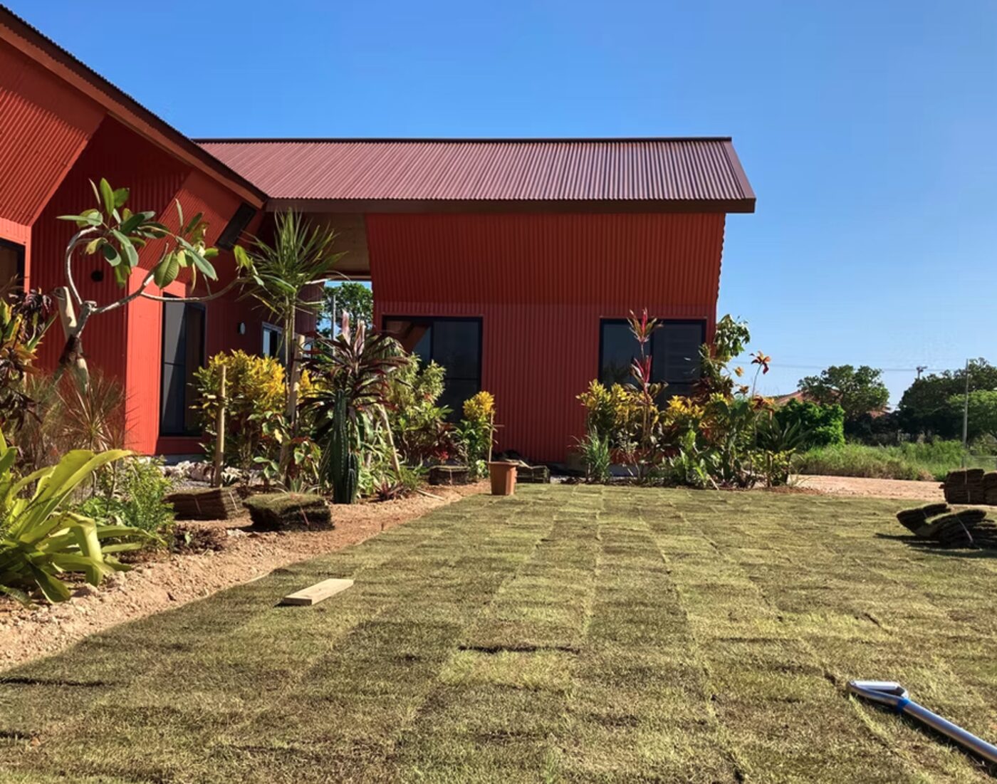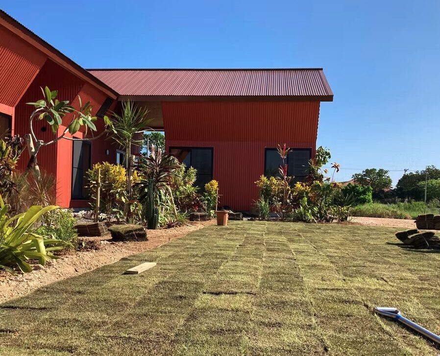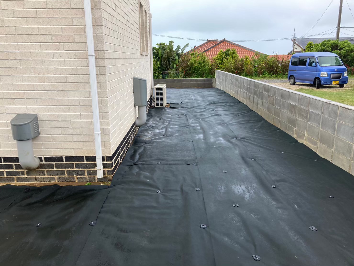 管理に手間がかからないよう、防草シートを施しました。