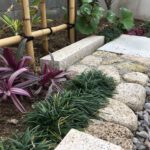 雑草の駆除と芝生管理が追いつかないとのご相談を受け、防草シート工事と、省メンテナンスで実現する和モダンな坪庭をご提案。